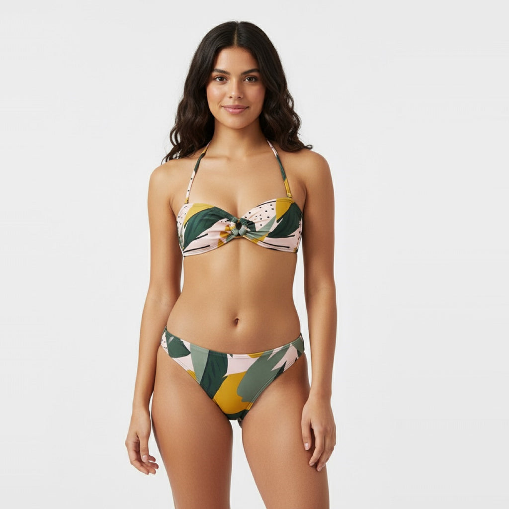 Tropical Leaf Bandeau Bikini Set
