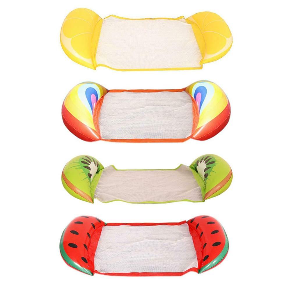 Inflatable Pool Float Water Hammock with Net Foldable Portable Fruit Floating Bed Backrest Floating Drainage Reclining Chair