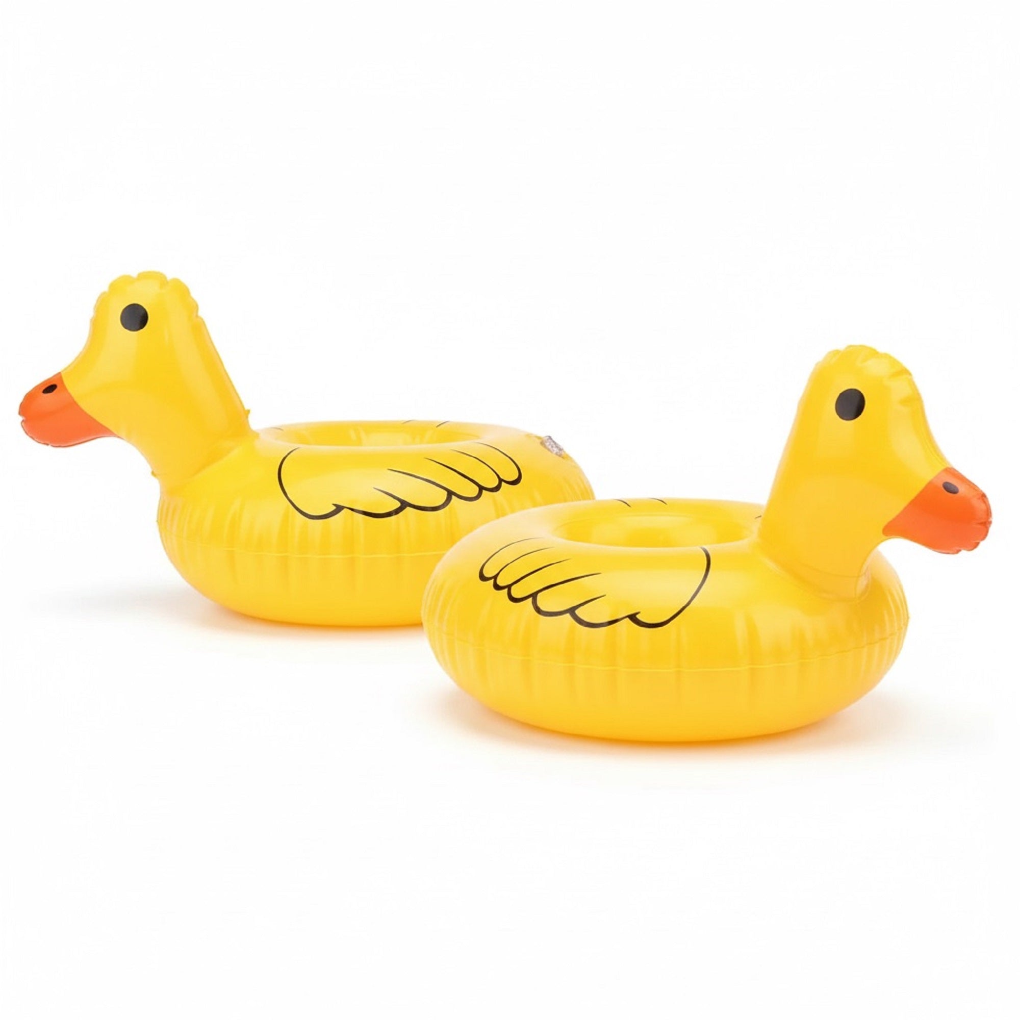 The perfect accessory for pool party fun, this duck drink holder inflates in seconds to make a secure float.