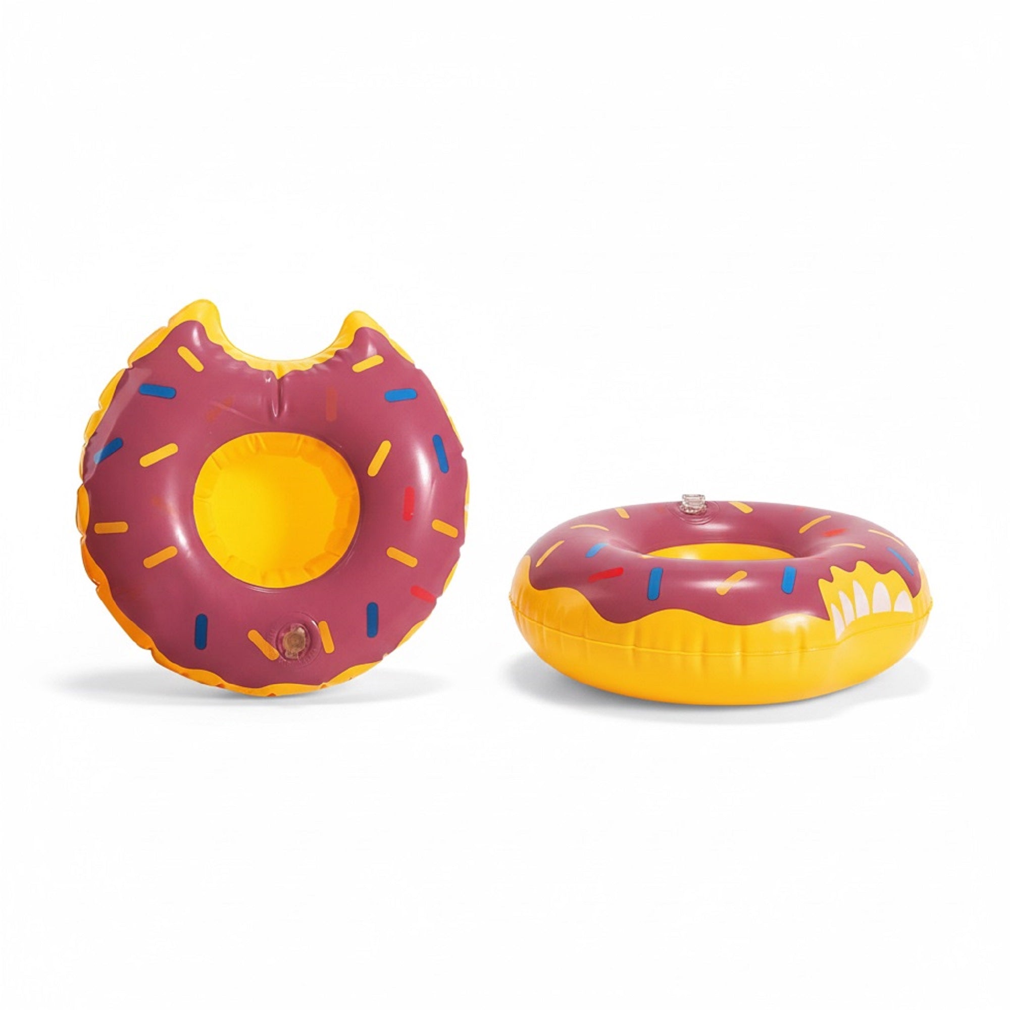 The full-bottom beverage boats hold cans and cups upright in a vinyl air-filled inner-tube & deflate whenever you need them.