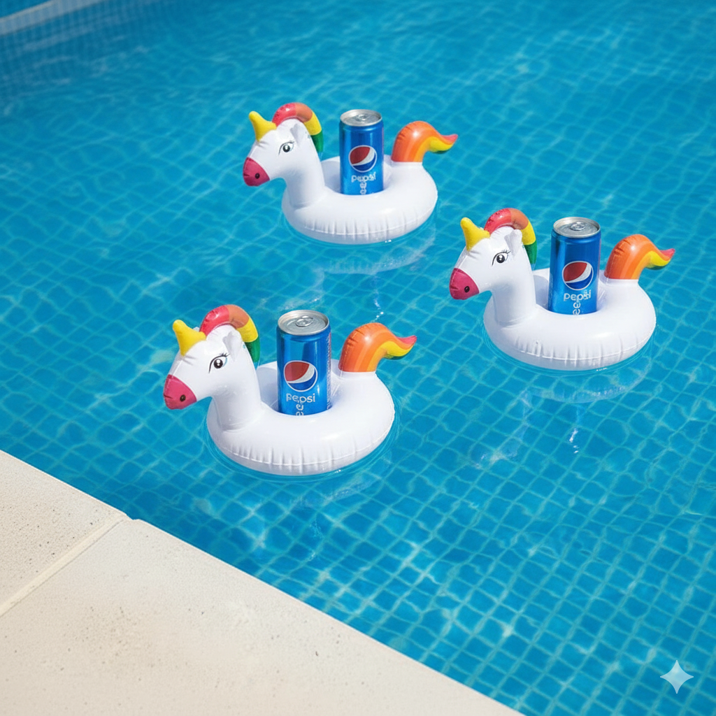 The perfect accessory for pool party fun, this unicorn drink holder inflates in seconds to make a secure float.