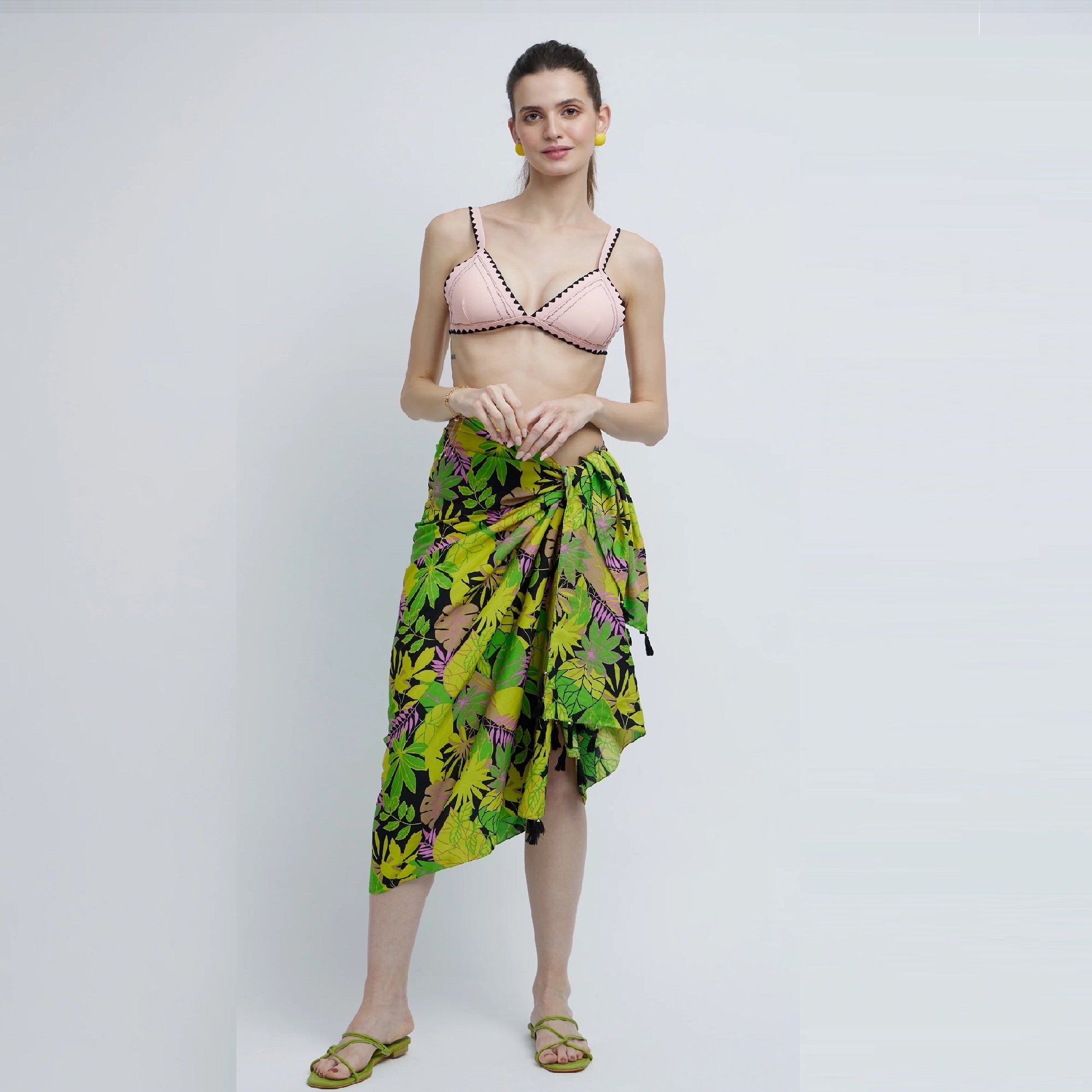 The sarong is made of light material with an attractive print.