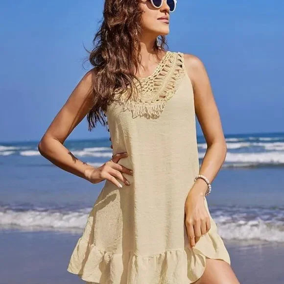 Enhance your style with a backless design and loose fit for freedom of movement. Enjoy the soft and comfortable feel of high-quality materials in this cover-up. Perfect for beach, pool, tanning salon, and water park, making it a versatile addition to your wardrobe. Elevate your summer wardrobe with this stylish and alluring women's cover-up.