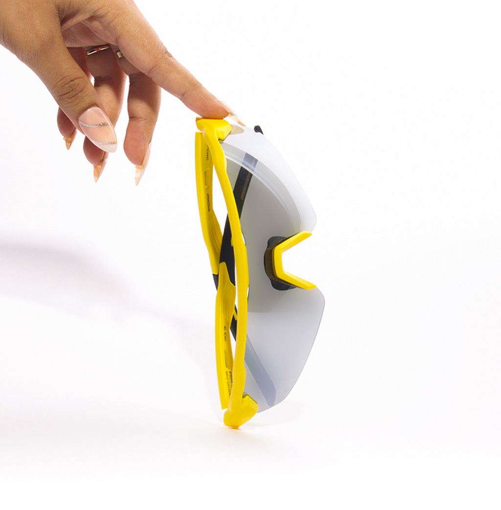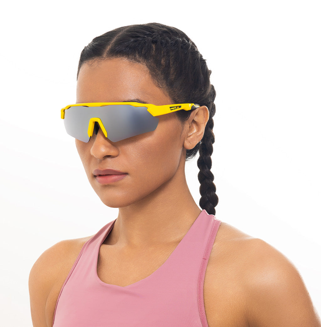Buzzin’ through sunshine and sweat. This yellow stinger brings the heat with a pop of bold and cool grey lenses to balance the vibe. Lightweight, grippy, and built to fly through your runs, rides, and reps. No-slip. All sting. Zero glare.