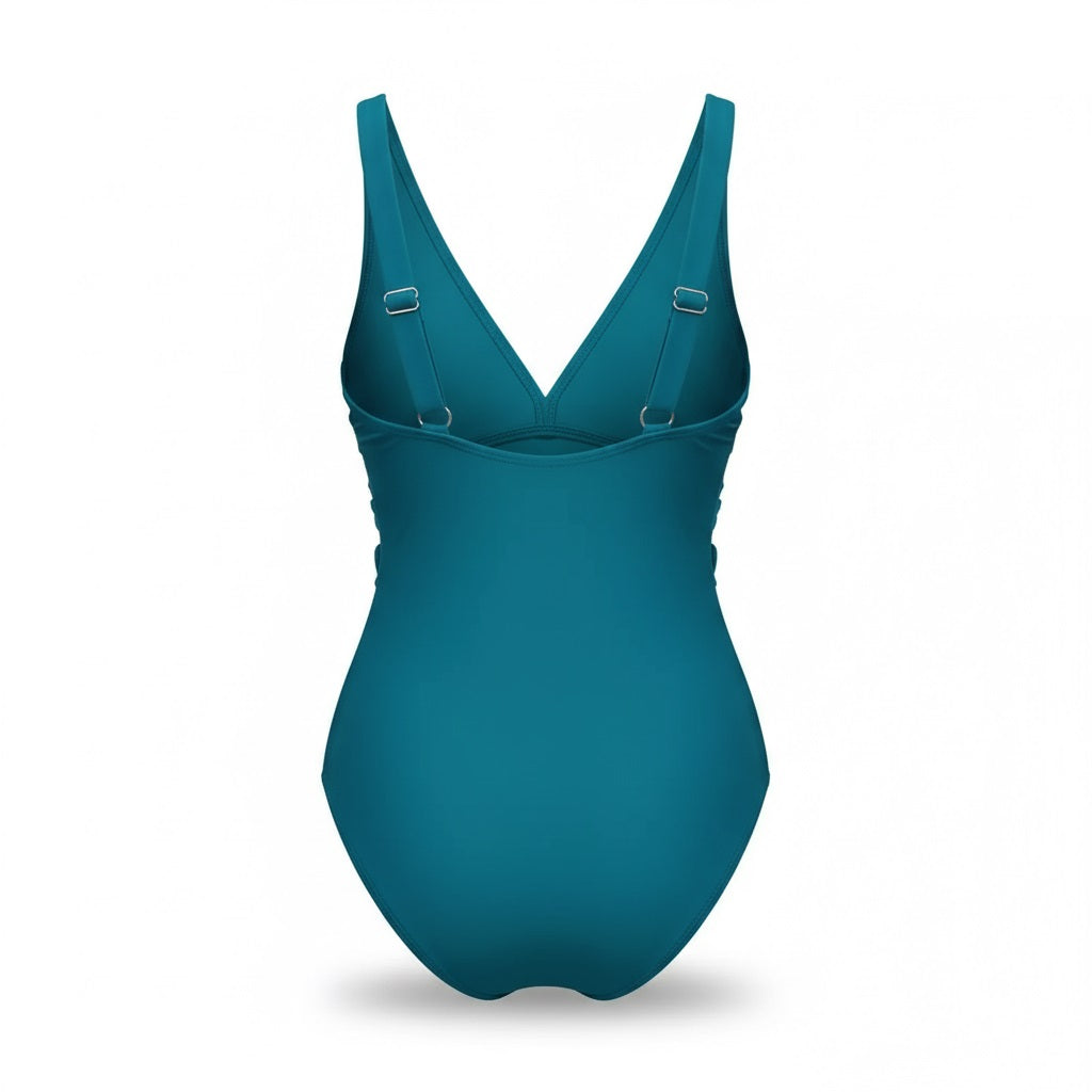 Eye-catching cutouts bring breezy yet sophisticated charm to this poolside one-piece styled with a daringly dipped neckline and comfy adjustable straps.