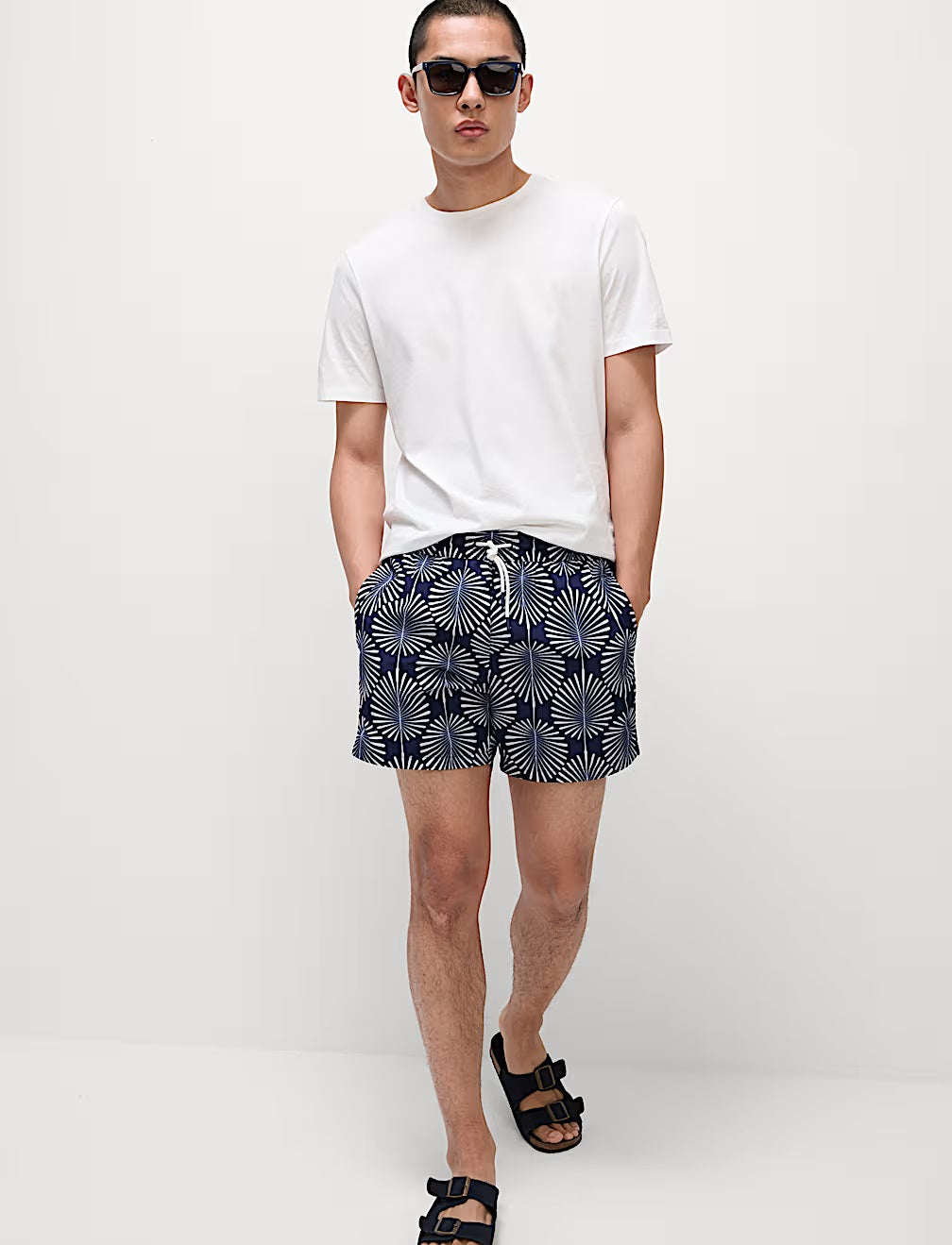Bring a tropical touch to your poolside look with these woodblock-printed swim shorts. They're made to a comfy regular fit with a secure drawstring waist. The quick-drying fabric means they're ready to wear again in no time. Sun Smart UPF50+ helps to protect sensitive skin against harmful UV rays. Their quick-drying fabric means they're ready to wear in a flash.