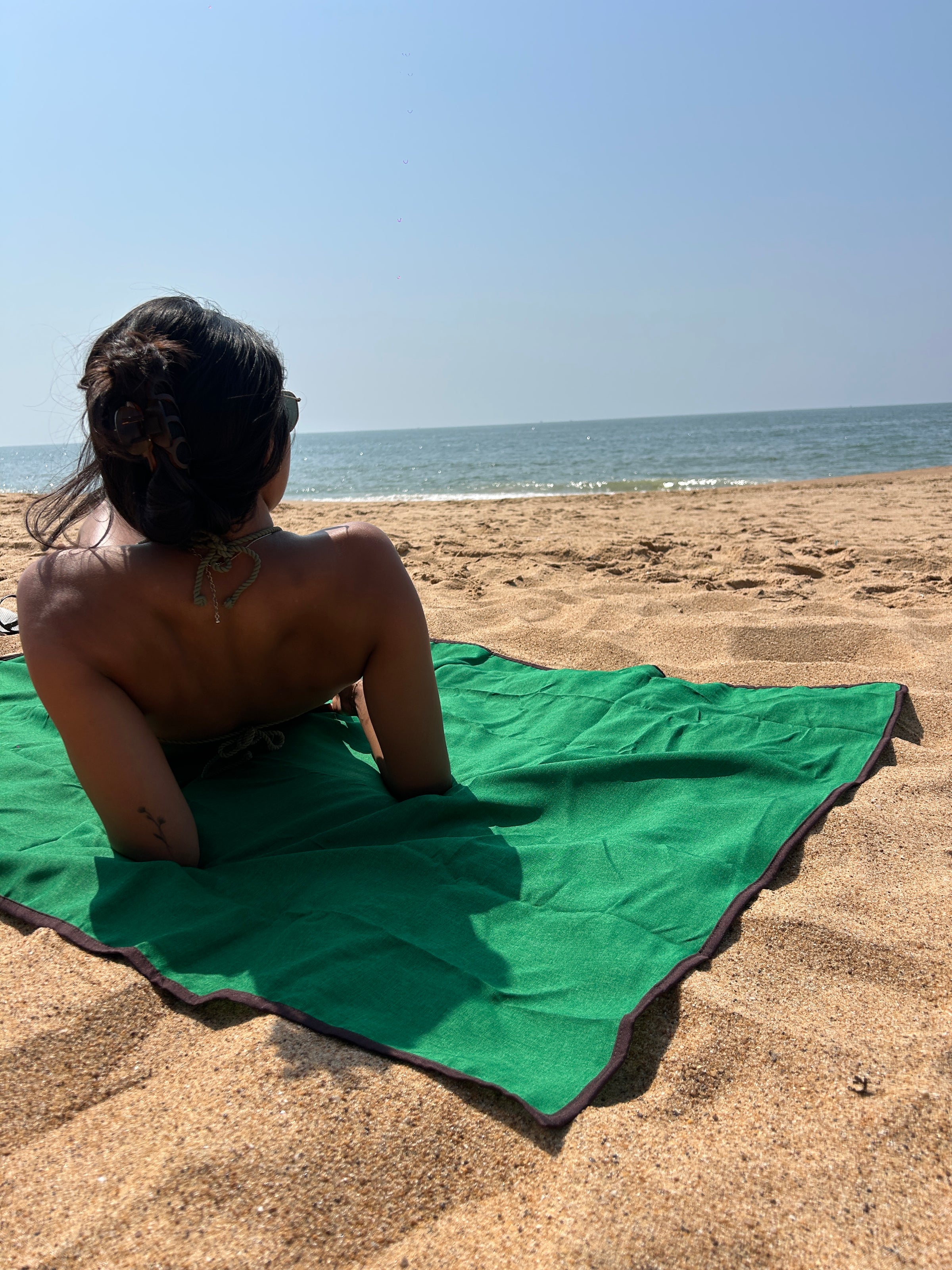 Made from a durable polyester linen blend, the towel resists sand, dries quickly after use, and stays fresh even with regular washing. It folds down neatly, packs easily, and works just as well for lounging, picnics, or casual outdoor use.