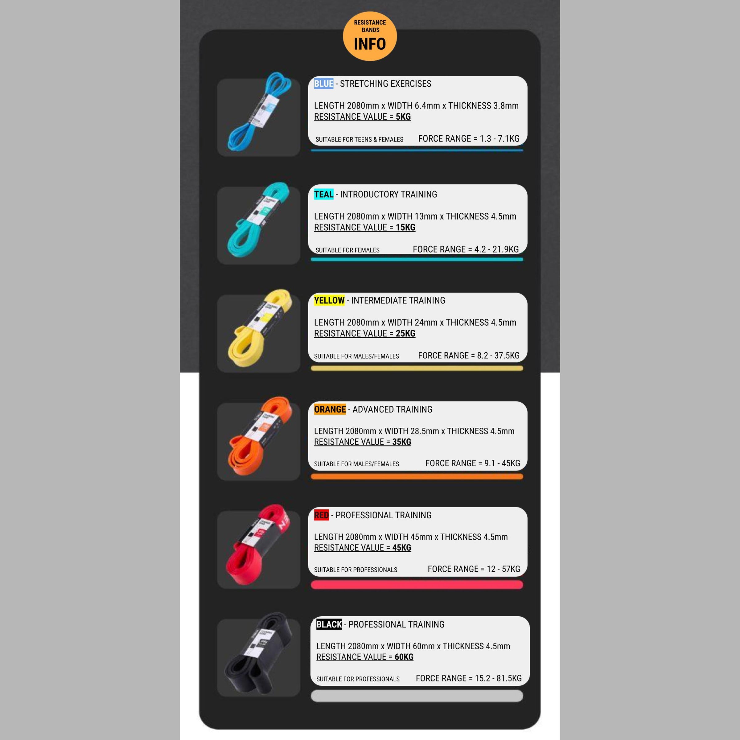 Vary your workouts with this 15 kg weight training band. Its resistance adds difficulty to certain exercises or provides support for others.